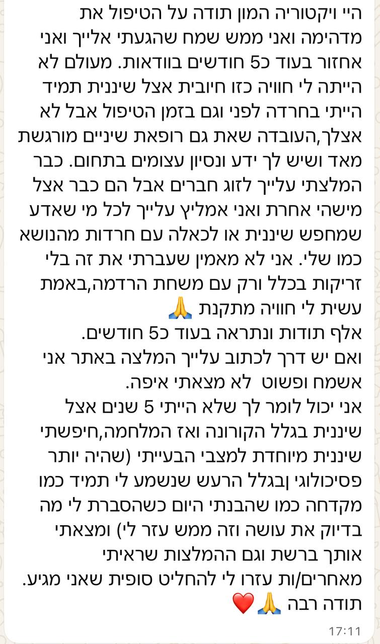 ויקטוריה השיננית מדהימה! הידע המקצועי ונהסיון שלה עצום וזה יתרון גדול. בגלל אבחנה שלה הבנתי שהתסמינים הקשים שסבלתי מהם תקופה ארוכה נבעו מהשיניים. פשוט עזרה לי המון ובזכותה הפסקתי לסבול. הטיפול שלה תמיד מקצועי ובאווירה נעימה. תמיד נותנת ייעוץ טוב והסבר איך לשמור טוב יותר על השיניים. ממליצה בחום ללכת אליה לטיפול. שיננית מקצועית ביותר ואדם מיוחד!